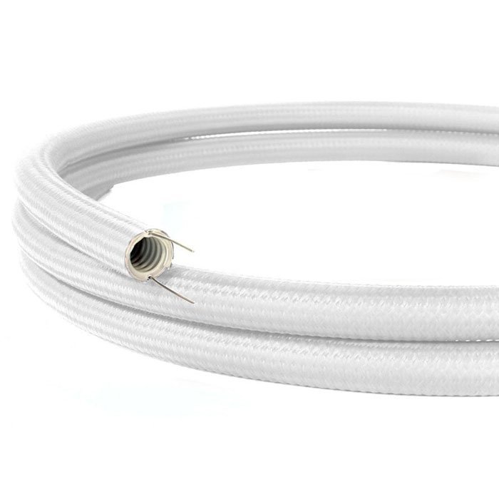 Biela ohybná elektroinštalačná trubka s produktovým označením RayonGloss RM01 je určená pre kreatívne povrchové rozvody elektroinštalácie. Kovové výstuhy integrované v plášti zaisťujú stabilný tvar a umožňujú ľahké ohýbanie a polohovanie, čo oceníte hlavne pri vedení káblov po stenách alebo stropoch. Povrch z jemnej Rayon (umelý hodváb) textílie dodáva trubke elegantný vzhľad, vďaka ktorému sa stáva nie len funkčným, ale aj dekoratívnym prvkom interiéru. Chránička káblu RM01 spĺňa vysoké nároky na design, pričom zachováva jednoduchú montáž a všetky výhody povrchovej elektroinštalácie.