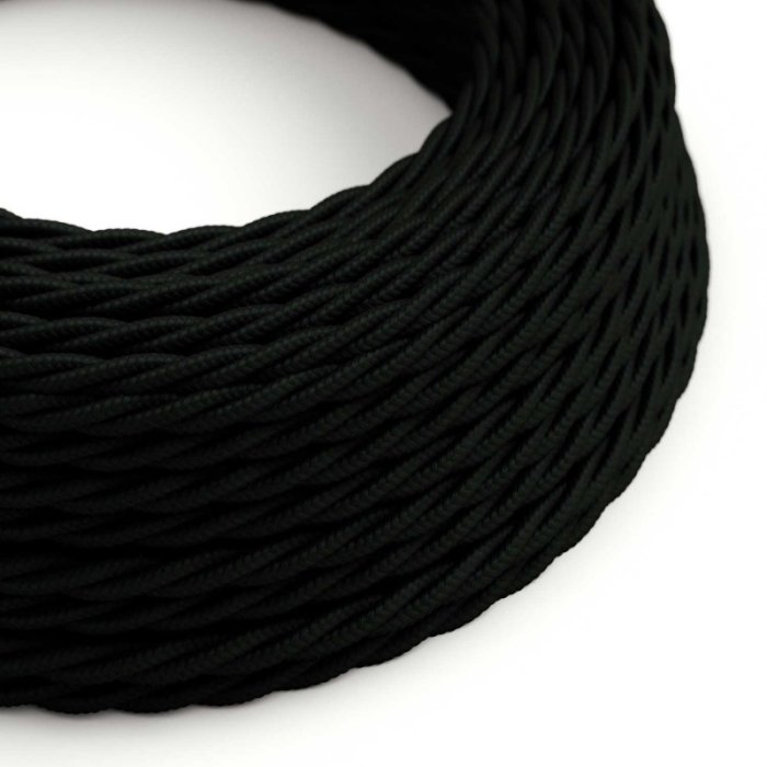 Čierny prepletaný textilný kábel 2x0,75 mm s produktovým označením RayonGloss TM04 je určený pre pevné inštalácie v elektrických sieťach 230 V. Vhodný je hlavne pre dekoratívne interiérové svietidlá alebo svetelné sústavy, kde vynikne jeho farebná stálosť a precízne zhotovenie a zároveň nie je vyžadovaný ochranný vodič (PE). Vďaka medeným lankovým vodičom v prepletanom prevedení, dvojitej PVC izolácii a precíznemu spracovaniu ponúka kábel vysokú mieru bezpečnosti, flexibilitu a nadštandardnú mechanickú odolnosť s nosnosťou káblov pre závesné svietidlá až 2,25 kg. Povrch z jemnej Rayon (umelý hodváb) textílie dodáva káblu mimoriadny vzhľad, vďaka ktorému sa stáva nie len funkčným, ale aj estetickým prvkom interiéru. Využite 2x0,75 mm prepletaný čierny textilný kábel TM04 pre individuálnu či malosériovú výrobu originálnych svietidiel či osvetľovacích sústav s dôrazom na design a detail.