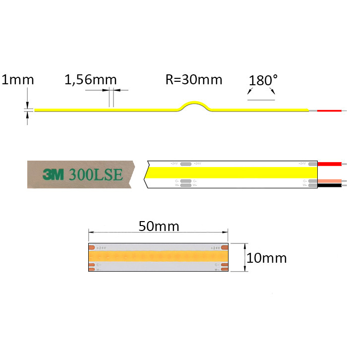 COB CCT LED pásik 24V Lux Miners | 16W | 640LED | CRI90+