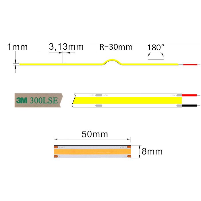 COB LED pásik 24V Lux Miners | 12W | 480LED | CRI90+