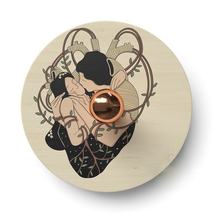 Ilustrácia dreveného tienidla robí nástennú lampu hravú. Každá strana tienidla je vyhotovená v odlíšenom dizajne. S radosťou ju môžete umiestniť do spálne, detskej izby, jedálne alebo obývačky. Fermaluce Romantic s ilustráciou je drevená nástenná lampa, ktorá nemá svojím vzhľadom, jednoduchosťou a celkovým poňatím konkurenciu.