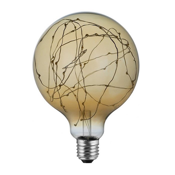 Dekoratívna žiarovka E27 závitu s produktovým označením Milleluci s príkonom 1,5W je pôsobivý a estetický svetelný zdroj. Obľúbený tvar jantárovej sklenenej banky G125 (Globe - v najširšej časti Ø 125mm) ju predurčuje ako skvelú alternatívu do všetkých stolných lámp alebo závesných svietidiel s objímkou E27. Dekoračná žiarovka Milleluci predstavuje unikátne poňatie osvetleného vlákna, ktoré sa skladá z 52 malých LED diód. Pri rozsvietení žiarovky navodzuje vyžarované dekoratívne svetlo iskrivý a žiarivý efekt, ktorý je svojim poňatím úplne jedinečné. Dekoratívna LED žiarovka G125 Milleluci produkuje scénické alebo harmonické osvetlenie charakteristiky: