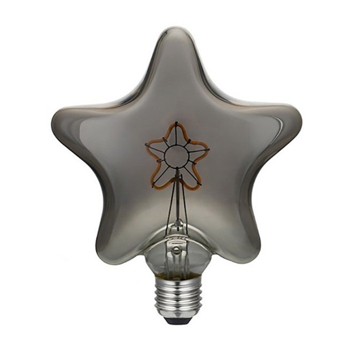Stmievateľná okrasná žiarovka hviezda E27 závitu s príkonom 3W je pôsobivý a estetický svetelný zdroj. Unikátny dizajn dymové žiarovky s produktovým názvom Star Smoky (v najširšej časti Ø 125mm) je rafinovaným produktom a vycibreným svetelným dielom, hneď z niekoľkých dôvodov. Žiarovka v tvare hviezdy umožňuje vytváranie jedinečných okrasných svietidiel a lámp s objímkou E27. Majstrovským dielom je taktiež dymové spracovanie sklenenej banky, ktoré spoločne s tvarovaním svietiaceho LED filament vlákna do hviezdy upúta všetku pozornosť. Stmievateľná hviezda žiarovka Star Smoky vytvára relaxačné a charizmatické okrasné osvetlenie špecifikácie: