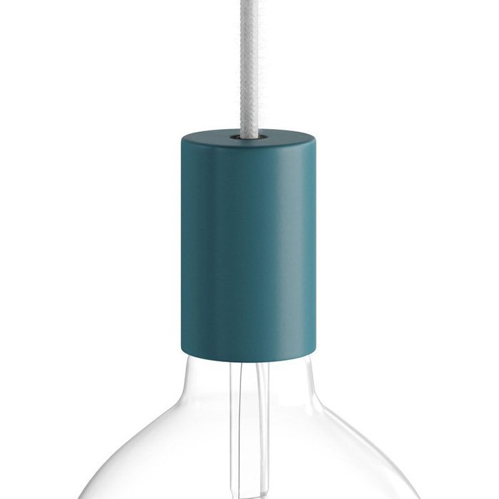 Kovová E27 objímka na žiarovku s produktovým označením Metalcolor kombinuje spoľahlivú funkčnosť a štýlové estetické spracovanie. Poskytuje široké možnosti pri návrhu, výrobe či renovácii lustrov a ďalších závesných svietidiel. Skrytá káblová priechodka pod vonkajším dekoratívnym kovovým plášťom vytvára čistý a kompaktný produktový vzhľad. Využijete kovovú objímku Metalcolor pre E27 žiarovky s veľkým závitom ako minimalistické riešenie, kde samotná žiarovka pôsobí ako hlavný designový prvok.