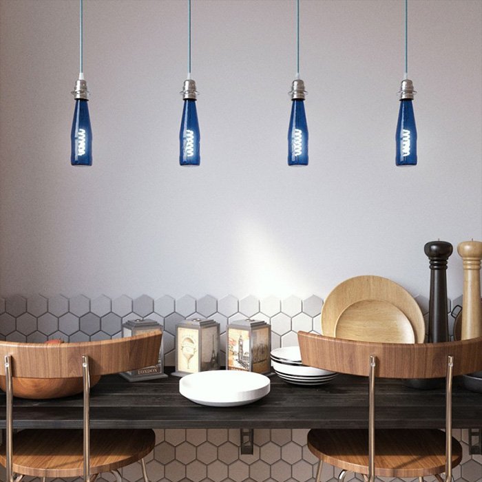 Dekoratívna LED žiarovka E27 Blue Beer s modrým sklom má očarujúci a originálny dizajn tvaru fľaše od piva. Osvetlenie pomocou žiarovky Blue Beer ozdobí každú miestnosť a vytvorí jedinečnú atmosféru. Svietiace vlákno s technológiou LED filament navodzuje pocit dokonalého dekoratívneho vzhľadu s tónom svetla charakteristiky: