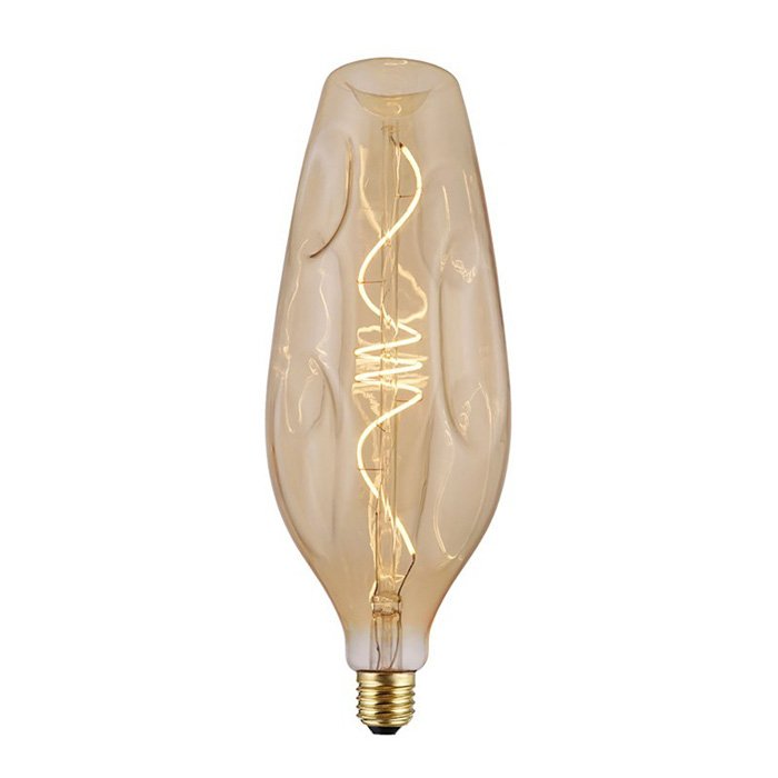 Stmievateľná dizajnová žiarovka E27 závitu s príkonom 5W je dekoratívny a moderný svetelný zdroj. Unikátny dizajn žiarovky z pera talianskych majstrov svetla pod názvom Bottle ( v najširšej časti Ø 110mm) je esteticky atraktívnou alternatívou osvetleného zdroja do všetkých závesných svietidiel s objímkou E27. To čo robí žiarovku Bumped Gold Bottle mimoriadnym prvkom svetelnej dekorácie je tvarovanie svetelného vlákna do špirály. Majstrovským dielom je tiež pretlačený tvar jantárového skla banky. Pri rozsvietení dizajn žiarovky sa prejavia výhody oboch výrobných technológií, ktoré na seba upútajú všetku pozornosť. Kombinácia špirálového vlákna a pretlačeného skla dizajn žiarovky Bumped Gold Bottle produkuje scénické alebo harmonické osvetlenie charakteristiky: