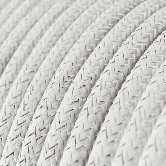 Trblietavý biely textilný kábel 3x0,75 mm s produktovým označením RayonGlitter RL01 je určený pre pevné inštalácie v elektrických sieťach 230 V. Vhodný je hlavne pre dekoratívne interiérové svietidlá alebo svetelné sústavy, kde vynikne jeho trblietavé farebné prevedenie aj precízne zhotovenie. Vďaka medeným lankovým vodičom v guľatom prevedení, dvojitej PVC izolácii a precíznemu spracovaniu ponúka kábel vysokú mieru bezpečnosti, flexibilitu a nadštandardnú mechanickú odolnosť s nosnosťou káblu pre zavesenie svietidla až 2,75 kg. Povrch z jemnej Rayon (umelý hodváb) textílie dodáva káblu mimoriadny vzhľad, vďaka ktorému sa stáva nie len funkčným, ale aj estetickým prvkom interiéru. Využite 3x0,75 mm biely trblietavý textilný kábel RL01 pre individuálnu či malosériovú výrobu originálnych svietidiel či osvetľovacích sústav s dôrazom na design a detail.