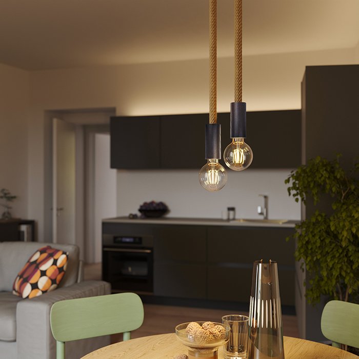 - Samotná objímka so závitom pre uchytenie žiarovky je vyrobená z termoplastu (vhodná pre kábel 2x0,75 i 3x0,75 mm | nevyžaduje uzemnenie) - moderného technického plastu známeho pre svoju vysokú pevnosť a odolnosť voči mechanickému namáhaniu. Tento materiál zaisťuje stabilnú fixáciu žiarovky i pri dlhodobom používaní a chráni ju pred samovoľným uvoľnením. Jeho nízka hmotnosť zároveň znižuje záťaž celého svietidla, bez toho aby bola narušená jeho stabilita či spoľahlivosť.