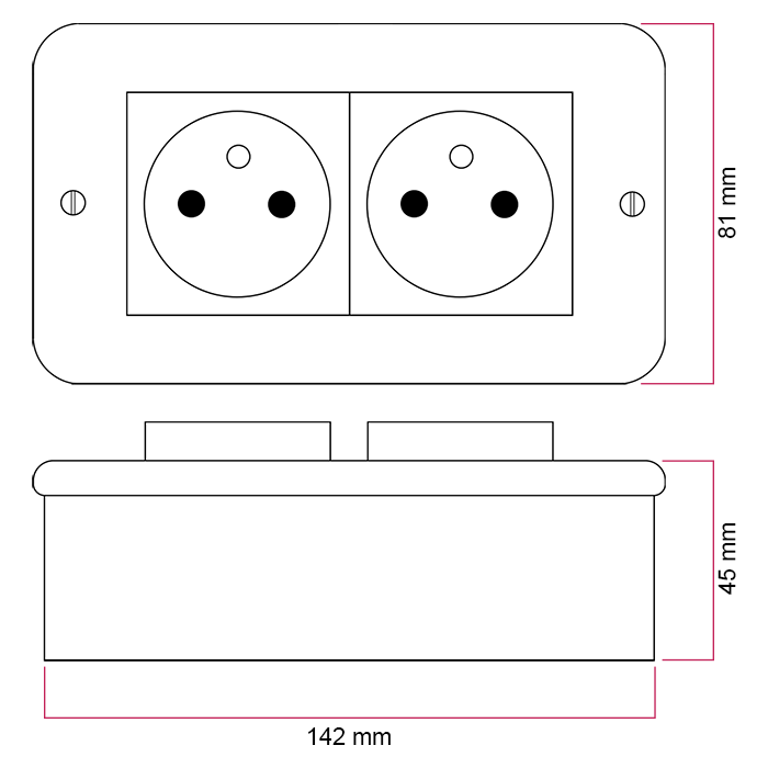 Povrchová dvojzásuvka 230V na stenu je vyrobená z kovu. Je robustný, preto ho môžete využiť ako v rezidenčných, tak predovšetkým komerčných projektoch. Ponúkaná je farebnom prevedení: