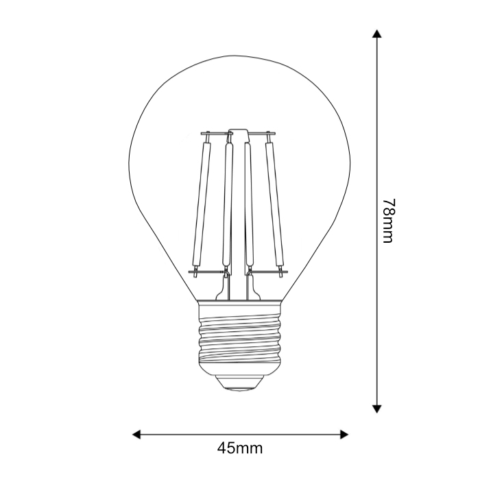 Mignon LED žiarovka E14 so špirálovým LED filament vláknom je podľa svojho tvaru označovaná miňonka. LED žiarovka P45 meria v najširšej časti 45mm.