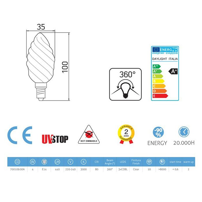 Skvelé technické spracovanie žiarovky od talianskych majstrov svetla zo spoločnosti Daylight Italia podčiarkuje jej jedinečnosť v každom detaile. Spoločne s dlhou životnosťou, ktorá niekoľkonásobne prevyšuje hodnoty klasických žiaroviek dokáže v mnohých prípadoch ospravedlniť vyššiu obstarávaciu cenu.