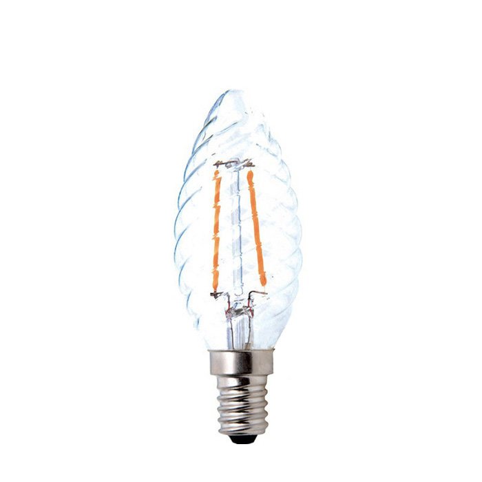 Žiarovka sviečka E14 dizajnu Twisted Olive, pripomínajúca svojim tvarom olivu prináša svetlo a radosť kamkoľvek ju umiestnite. Rovné vlákno technológie LED filament pôsobí pri rozsvietení žiarovky skutočne mimoriadnym dojmom. Číre sfarbenie skla žiarovky je vhodné na dosiahnutie veľkého svetelného výkonu bez difúzie svetla pri charakteristike: