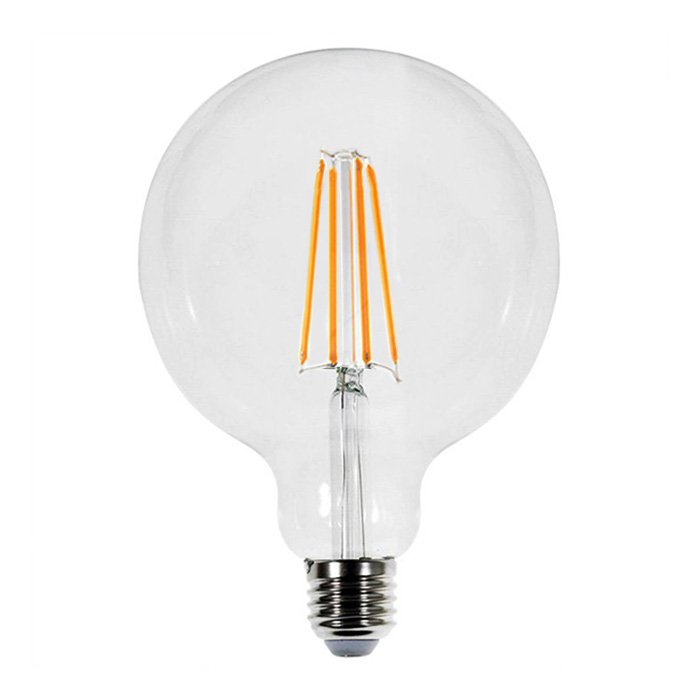 Stmievateľná filamentová žiarovka E27 závitu s príkonom 7,5W je technicky kvalitný a energeticky efektívny svetelný zdroj. Vzhľadom k obľúbenému tvaru čírej sklenenej banky G125 (Globe - v najširšej časti Ø 125mm) je skvelou alternatívou do všetkých závesných svietidiel s objímkou E27. Pri rozsvietení stmievateľnej filament žiarovky sa prejavia výhody číreho zafarbenia skla. Vyžarované svetlo preniká do priestoru celkom bez difúzie. Stmievajúca filament žiarovka G125 s lineárne uloženými vláknami 4xLONG COBL produkuje osvetlenie s charakteristikami: