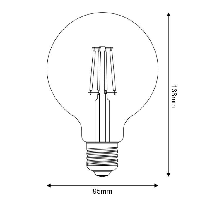 Filamentová žiarovka E27 Globe Long - G95 | 4,5W | CRI80