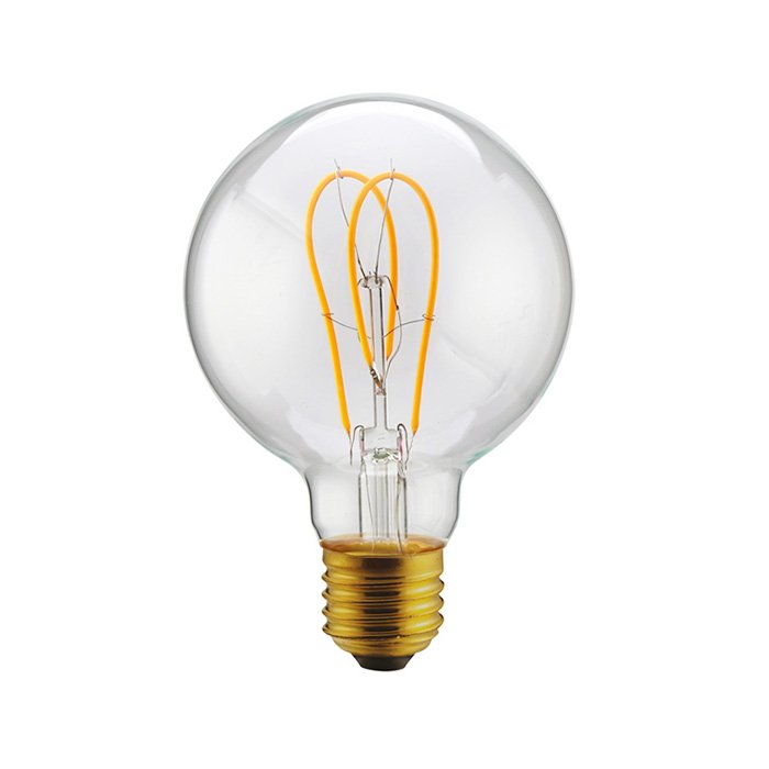 Stmievateľná retro žiarovka E27 závitu s produktovým označením Loop s príkonom 4,9W je dekoratívny a energeticky efektívny svetelný zdroj. Vzhľadom k obľúbenému tvaru čírej sklenenej banky G95 (Globe - v najširšej časti Ø 95mm) je skvelou alternatívou do všetkých závesných svietidiel s objímkou E27. To, čo robí žiarovku Loop mimoriadnym prvkom svetelnej dekorácie v retro štýle je tvarovanie svetelného vlákna do dvoch veľkých oblúkov. Pri rozsvietení retro žiarovky sa prejavia výhody číreho zafarbenia skla. Produkované svetlo je rovnomerne rozptýlené po celej ploche žiarovky. Vyžarované svetlo preniká do priestoru úplne bez difúzie. Stmievajúca opálová žiarovka G95 produkuje osvetlenie s charakteristikami: