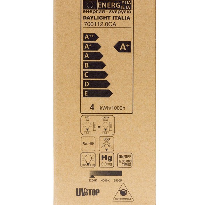 Kvalitu, efektivitu prevádzky a dlhodobú životnosť cez 15 000 hodín garantuje svetovo rešpektovaný výrobca žiaroviek DayLight Italia. Precízne technické spracovanie so zameraním na každý detail opálovej žiarovky je to, čím táto spoločnosť dosiahla významný podiel na trhu so svetelnými zdrojmi. Kvalitná opálová žiarovka s technickými vlastnosťami ako: No Flickering, IC Driver Design, COB LED Chip, (Ra) CRI80 dokáže v mnohých prípadoch ospravedlniť vyššie kúpne náklady.