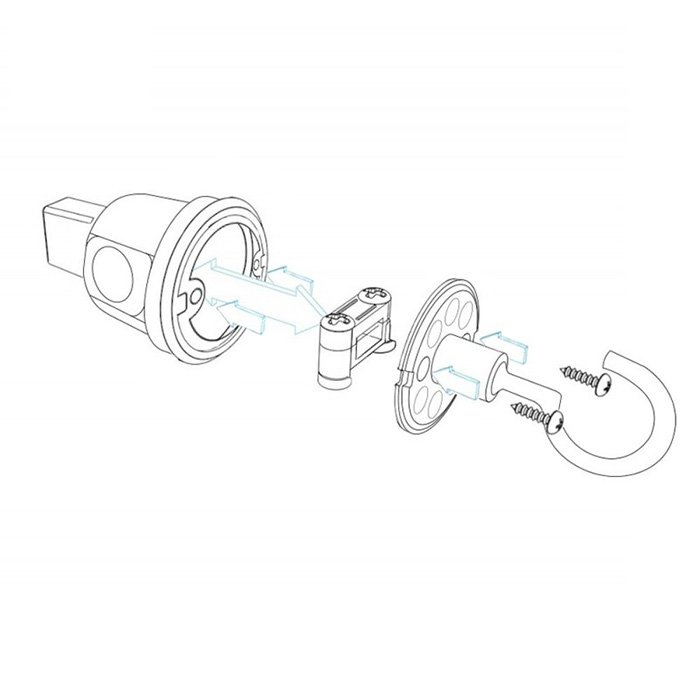IP44 hák Hookman sa pripája na koniec elektrického káblu pomocou šrúbovacej svorkovnice. Keďže sa jedná o súčasť elektrickej inštalácie, odporúčame jeho montáž prenechať odborne spôsobilej osobe s príslušnou elektrotechnickou kvalifikáciou.