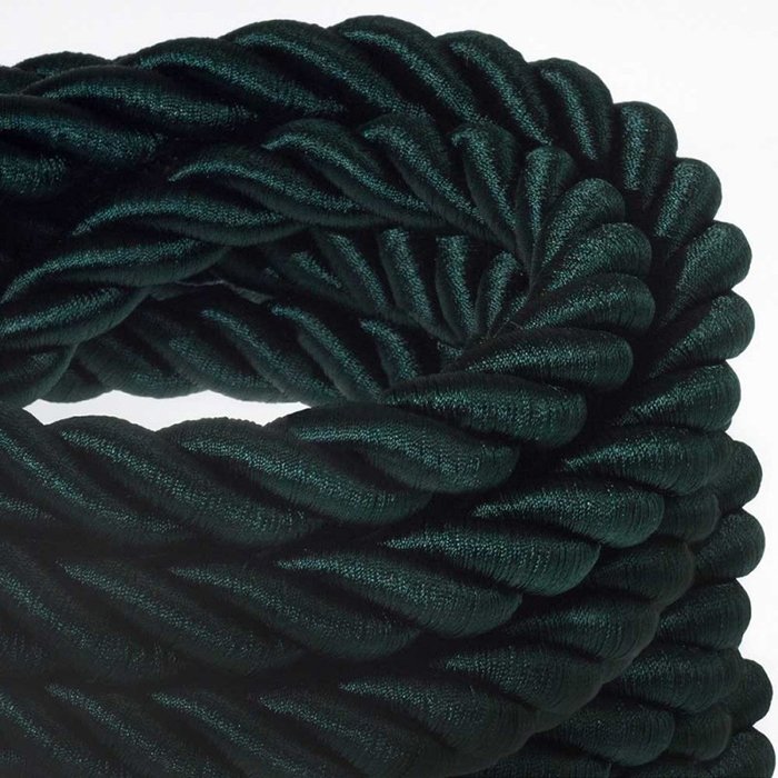 Materiálom pre tmavo zelený lanový kábel 2XL s vysokým leskom je umelý hodváb. Hodvábny oplet špirálového lanového elektrického kábla je typický krásnym, lesklým povrchom a jasným podaním farieb. Je vyrobený novou technológiou, umožňujúcou úplne novú úroveň v oblasti spracovania povrchovej úpravy. Umelý hodváb je pôsobivý materiál vhodný na výrobu dizajnových svietidiel v modernom alebo retro štýle. Prepletenie jednotlivých vodičov do špirály dodáva textilnému lanovému káblu v lesklo zelenom prevedení neobyčajný vzhľad a efekt. Špirálový kábel lanový typu 24VERDE osloví všetky tvorivé duše, pretože skrátka priťahuje pozornosť.