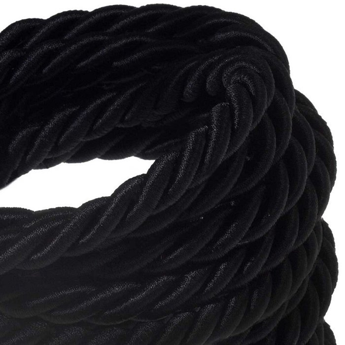 Čierny textilný lanový kábel 3x0,75 mm s produktovým označením RayonGloss-16 je určený pre pevné inštalácie v elektrických sieťach 230 V. Ideálne sa hodí pre dekoratívne interiérové svietidlá a designové svetelné sústavy, kde naplno vynikne jeho prirodzený vzhľad, verne pripomínajúci skutočné lano. Vďaka medeným lankovým vodičom v krútenom prevedení, dvojitej PVC izolácii a precíznemu spracovaniu ponúka kábel vysokú mieru bezpečnosti, flexibilitu a nadštandardnú mechanickú odolnosť s nosnosťou káblu pre závesné svietidlá až 2,75 kg. Povrch z jemnej Rayon (umelý hodváb) textílie dodáva lanovému káblu mimoriadny vzhľad, vďaka ktorému sa stáva nie len funkčným, ale aj estetickým prvkom interiéru. Využite 3x0,75 mm čierny lanový textilný kábel pre individuálnu či malosériovú výrobu originálnych svietidiel či osvetľovacích sústav s dôrazom na design a detail.