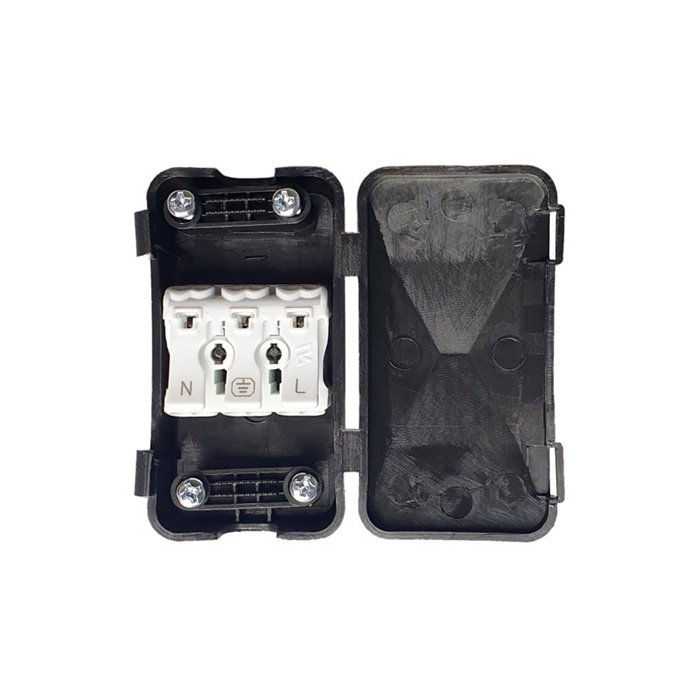 Káblová spojka na prepojenie kabeláže s textilným káblom. Možné zapojiť na každom póle dva vstupné a dva výstupné káble s maximálnym prierezom 2,5mm2.