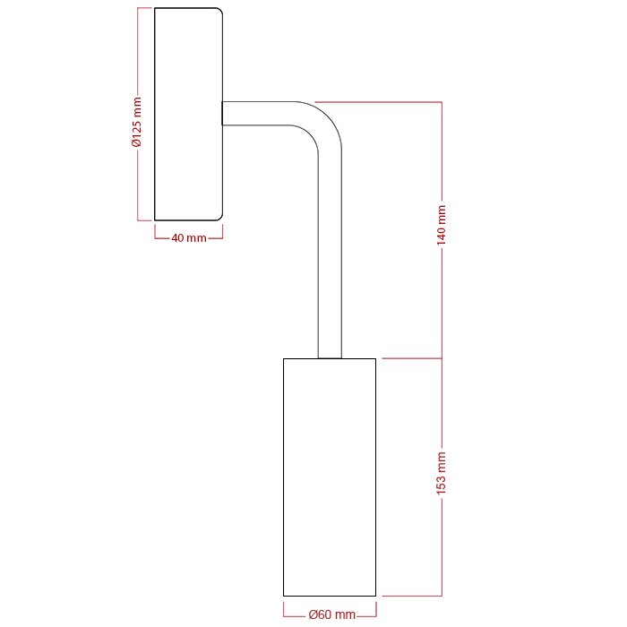 - Kovové zahnuté predlžovacie rameno 14cm