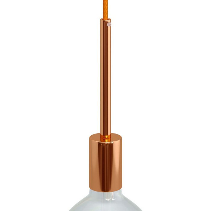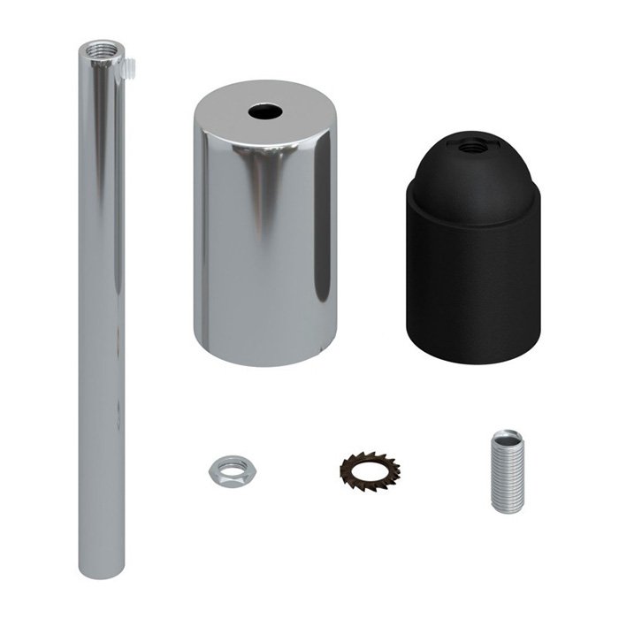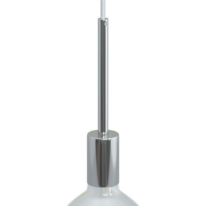 Kovová E27 objímka na žiarovku s produktovým označením Metala-15 kombinuje spoľahlivú funkčnosť a štýlové estetické spracovanie. Poskytuje široké možnosti pri návrhu, výrobe či renovácii svietidiel. Je možné ju využiť pre závesné svietidlá, nástenné inštalácie alebo ako súčasť zložitejších svetelných zostáv. 15 cm dlhá valcová priechodka pôsobí ako designový detail, ktorý pozdvihne celkový vzhľad osvetlení. Využite kovovú objímku Metala-15 pre E27 žiarovky s veľkým závitom ako minimalistické riešenie, kde samotná žiarovka pôsobí ako hlavný designový prvok.