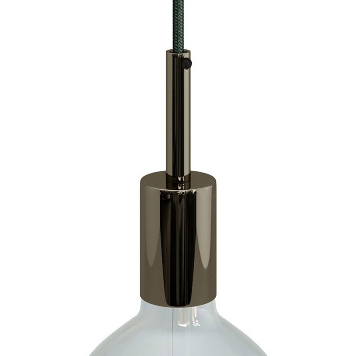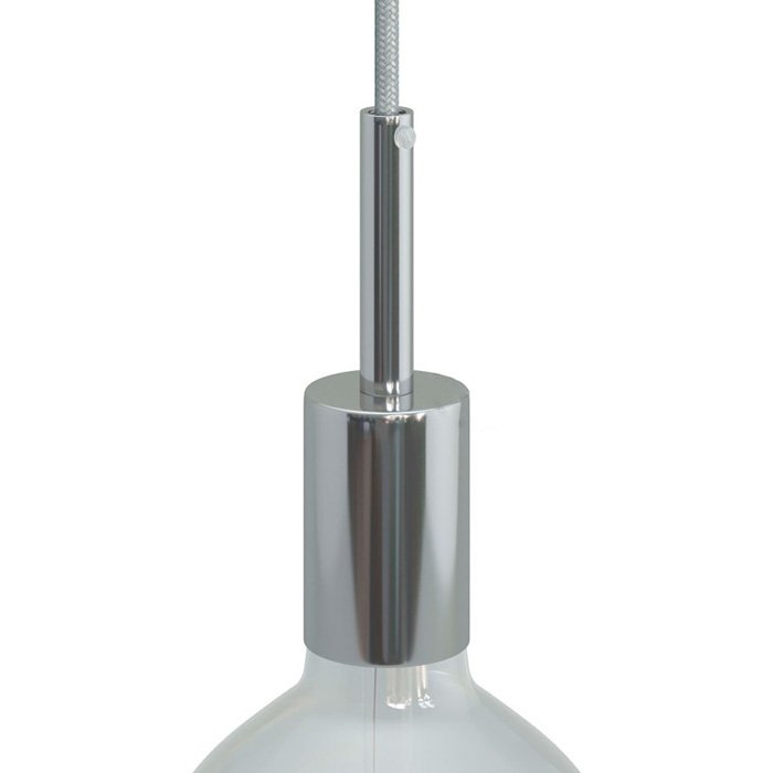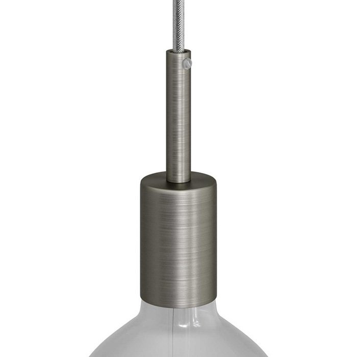 Kovová E27 objímka na žiarovku s produktovým označením Metala-7 kombinuje spoľahlivú funkčnosť a štýlové estetické spracovanie. Poskytuje široké možnosti pri návrhu, výrobe či renovácii svietidiel. Je možné ju využiť pre závesné svietidlá, nástenné inštalácie alebo ako súčasť zložitejších svetelných sústav. 7 cm dlhá valcová priechodka pôsobí ako designový detail, ktorý pozdvihne celkový vzhľad osvetlení. Využite kovovú objímku Metala-7 pre E27 žiarovky s veľkým závitom ako minimalistické riešenie, kde samotná žiarovka pôsobí ako hlavný designový prvok.