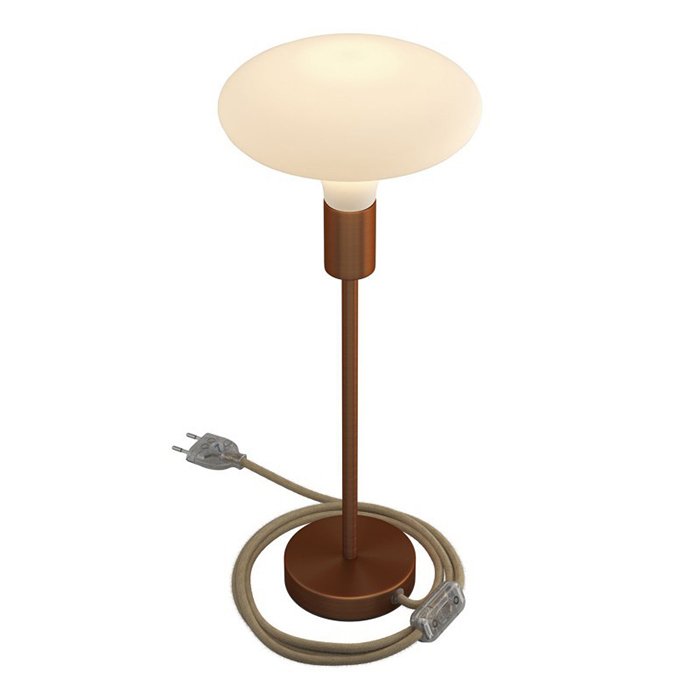 Kovová stolná lampa retro štýlu Alzaluce Metal pre žiarovku E27 je mimoriadnym produktom vyrobeným z ušľachtilých materiálov a komponentov. Ak ste nadšenci do retro štýlu a hľadáte perfektnú kovovú stolnú lampu alebo len lampičku na nočný stolík je pre vás Alzaluce Metal ideálnym riešením. Milovníkov dizajnu a všetky tvorivé duše určite poteší možnosť výberu z viacerých farebných variant, ďalej rôznych dĺžok predlžovacej stopky a vzhľadu textilného kábla. Pre komfortné ovládanie svietidla je kovová stolná retro lampa vybavená aj šnúrovým vypínačom. Vzhľad kovovej stolnej retro lampy a jej vysokú technickú kvalitu si vzali na starosť talianski majstri svetla. Lampa vrátane všetkých komponentov je produkciou Made in Italy.