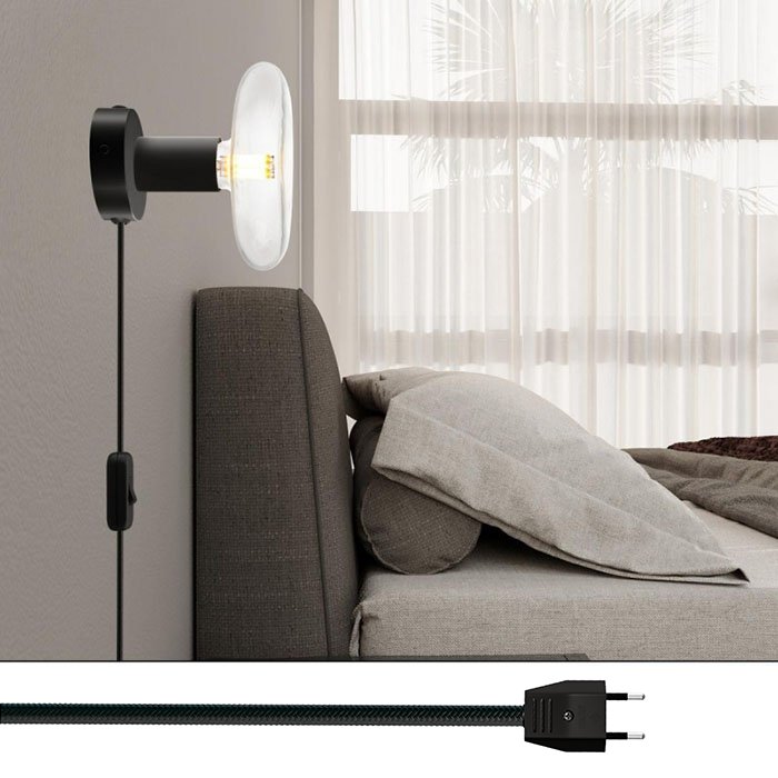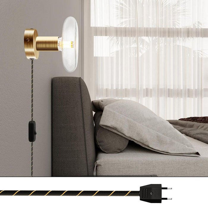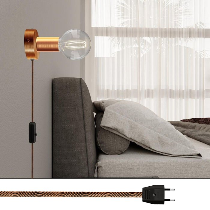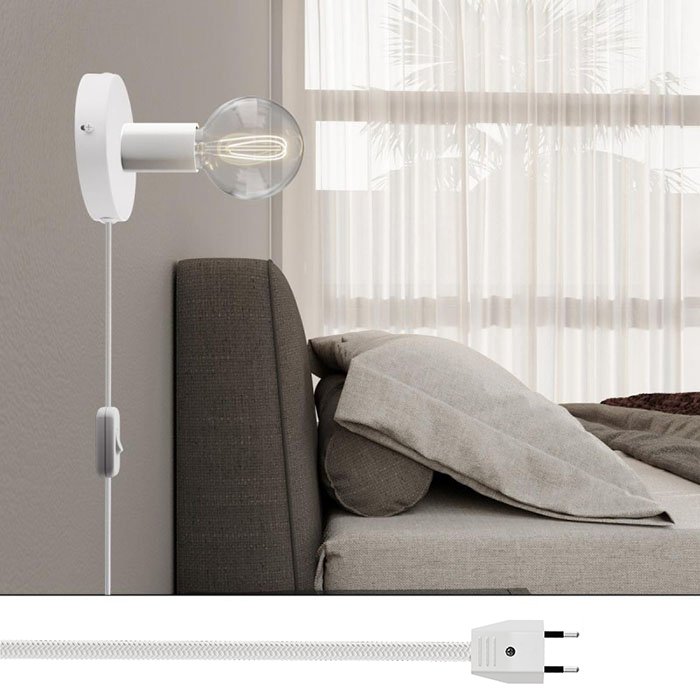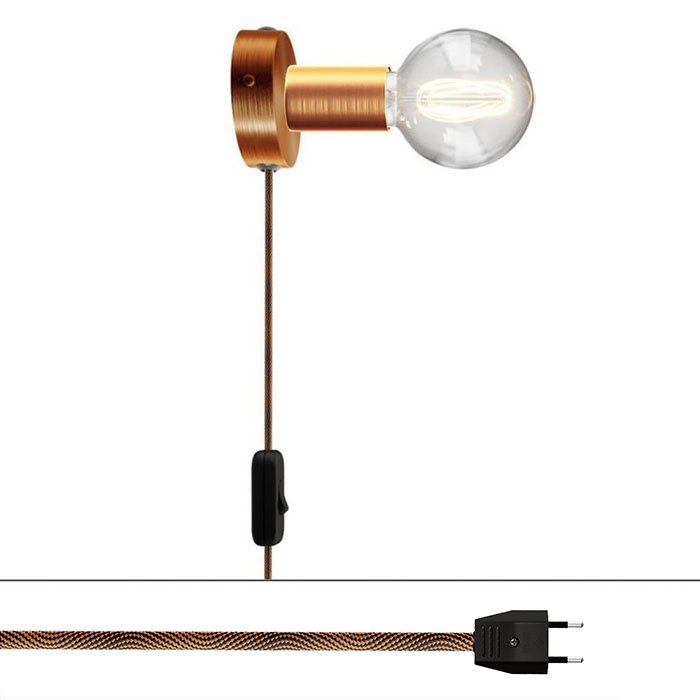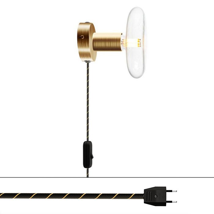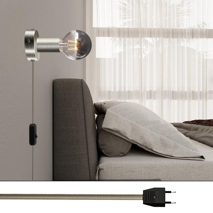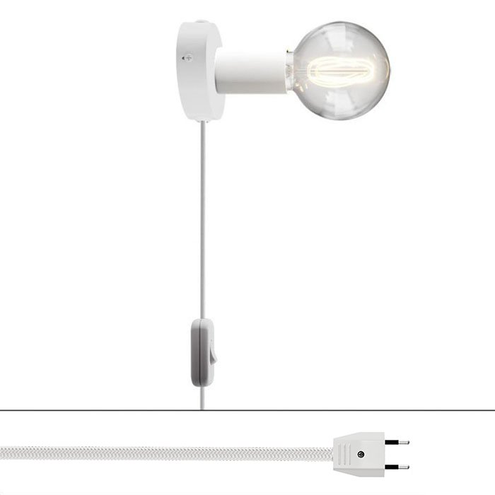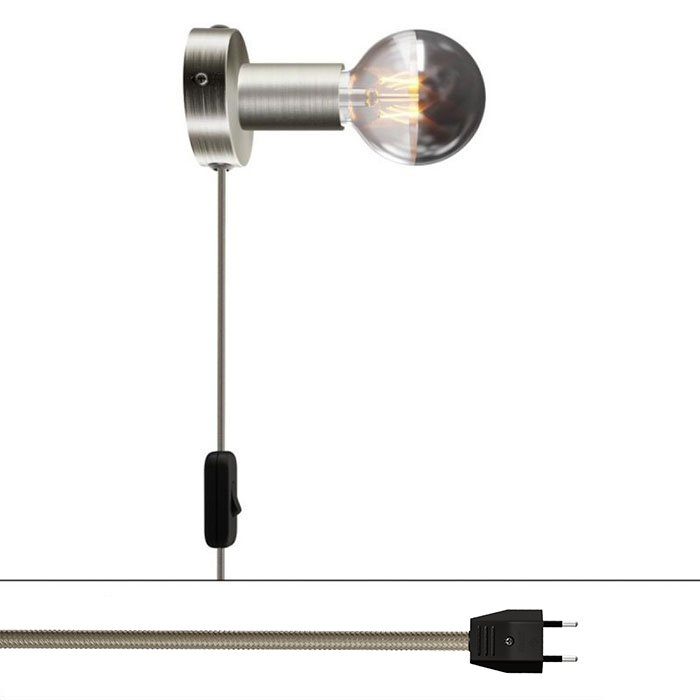 Pre nástenné svetlo s vypínačom je charakteristické kovové spracovanie lampy s päticou pre žiarovku E27, kolískovým vypínačom na kábli a zástrčkou do zásuvky na 230V. Všetko dokonale zladené a navrhnuté talianskymi majstrami svetla.