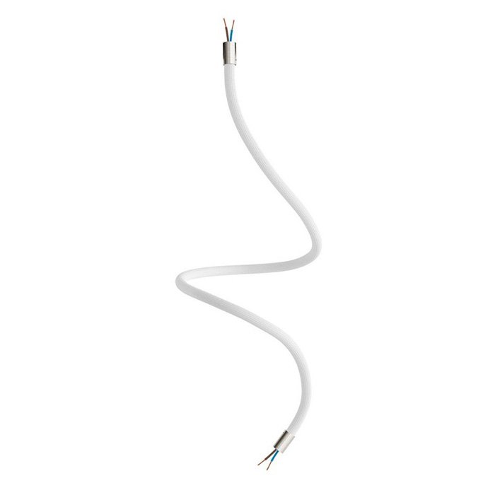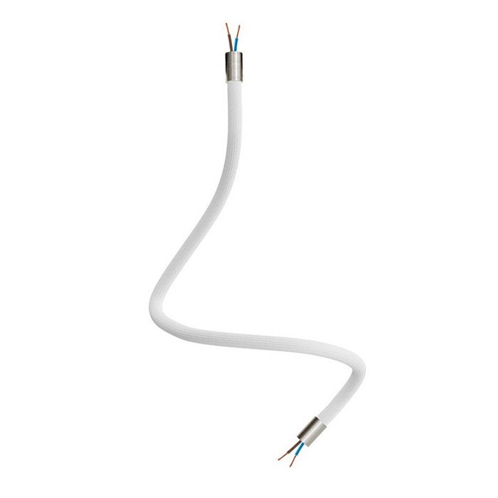 Biele flexibilné rameno pre lampy a kreatívne svetelné inštalácie Flex RM01 je skvelou voľbou pre všetkých, ktorí chcú vytvárať originálne svietidlá alebo experimentovať s rôznymi spôsobmi montáže osvetlenia. Umožňuje nakláňanie, otáčanie aj tvarovanie a je vybavené závitovou rúrkou M10 na oboch koncoch. Vo vnútri ramena je už zavlečený vodič 2×0,75 mm², ktorý na oboch stranách vyčnieva, čo uľahčuje pripojenie komponentov, ako sú stropné či nástenné krytky pre svietidlá alebo objímky na žiarovky.
