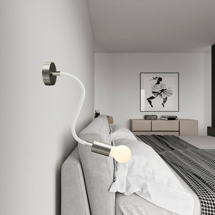 Opletený povrch z jemnej Rayon textílie (umelý hodváb) dodáva kovovému husiemu krku s robustnou mechanikou mimoriadny vzhľad, vďaka ktorému sa stáva nielen funkčným, ale aj estetickým prvkom interiéru.