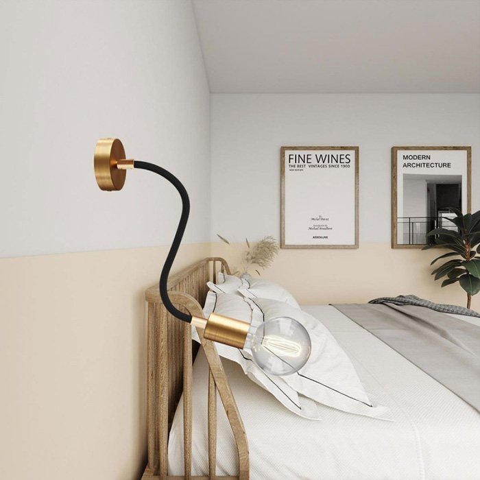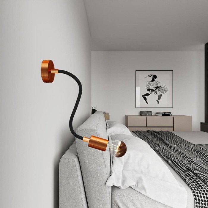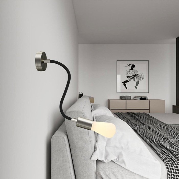 Opletený povrch z jemnej Rayon textílie (umelý hodváb) dodáva kovovému husiemu krku s robustnou mechanikou mimoriadny vzhľad, vďaka ktorému sa stáva nielen funkčným, ale aj estetickým prvkom interiéru.