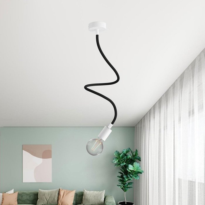 Čierne flexibilné rameno pre lampy a kreatívne svetelné inštalácie Flex RM04 je skvelou voľbou pre všetkých, ktorí chcú vytvárať originálne svietidlá alebo experimentovať s rôznymi spôsobmi montáže osvetlenia. Umožňuje nakláňanie, otáčanie aj tvarovanie a je vybavené závitovou rúrkou M10 na oboch koncoch. Vo vnútri ramena je už zavlečený vodič 2×0,75 mm², ktorý na oboch stranách vyčnieva, čo uľahčuje pripojenie komponentov, ako sú stropné či nástenné krytky pre svietidlá alebo objímky na žiarovky.