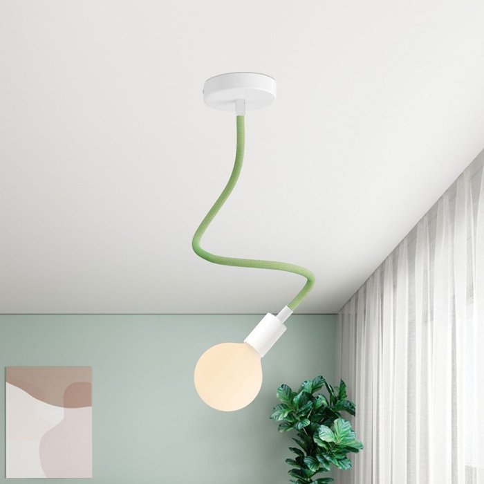 Zelené flexibilné rameno pre lampy a kreatívne svetelné inštalácie Flex RM77 je skvelou voľbou pre všetkých, ktorí chcú vytvárať originálne svietidlá alebo experimentovať s rôznymi spôsobmi montáže osvetlenia. Umožňuje nakláňanie, otáčanie aj tvarovanie a je vybavené závitovou rúrkou M10 na oboch koncoch. Vo vnútri ramena je už zavlečený vodič 2×0,75 mm², ktorý na oboch stranách vyčnieva, čo uľahčuje pripojenie komponentov, ako sú stropné či nástenné krytky pre svietidlá alebo objímky na žiarovky.