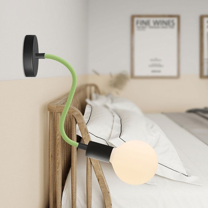 Opletený povrch z jemnej Rayon textílie (umelý hodváb) dodáva kovovému husiemu krku s robustnou mechanikou mimoriadny vzhľad, vďaka ktorému sa stáva nielen funkčným, ale aj estetickým prvkom interiéru.