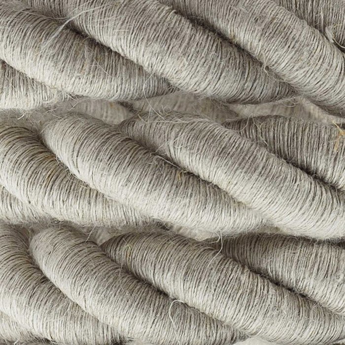 Materiálom pre lanový kábel je ľan. Ľanový oplet elektrického lanového kábla je typický matným podaním farieb s hrubým spracovaním tkaniny. Ľan pôsobí veľmi prirodzene, skvele sa kombinuje s materiálmi ako je drevo alebo kov. Prináša dotyk tepla a prírody do akéhokoľvek prostredia. Perfektne sa hodí na vytvorenie útulného prostredia pomocou retro a vintage štýlu osvetlenia. Ľanový lanový kábel 24LIN osloví všetky tvorivé duše, pretože skrátka priťahuje pozornosť.