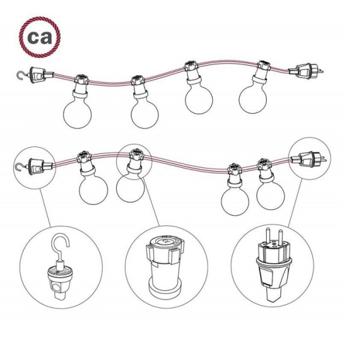 Možností jeho využitia je hneď niekoľko. Plochý textilný kábel CM03 s rozmermi 13,5x5,5 mm môžete použiť na renováciu existujúcich svietidiel a dodať im nový vzhľad alebo ako základ pre tvorbu úplne originálneho a individuálneho svetelného riešenia vo forme osvetlenej reťaze: