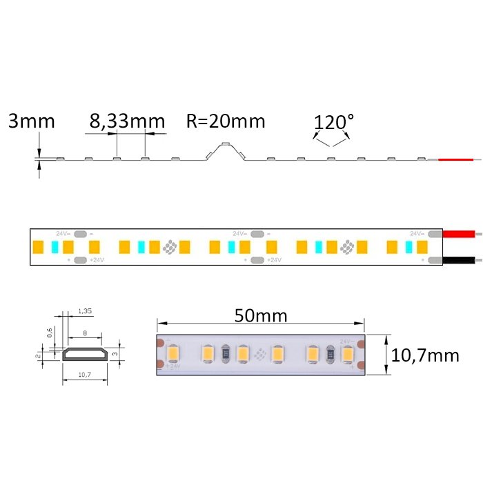 LED pásik 24V Lux Miners | IP65 | 9,6W | 120LED | CRI80+