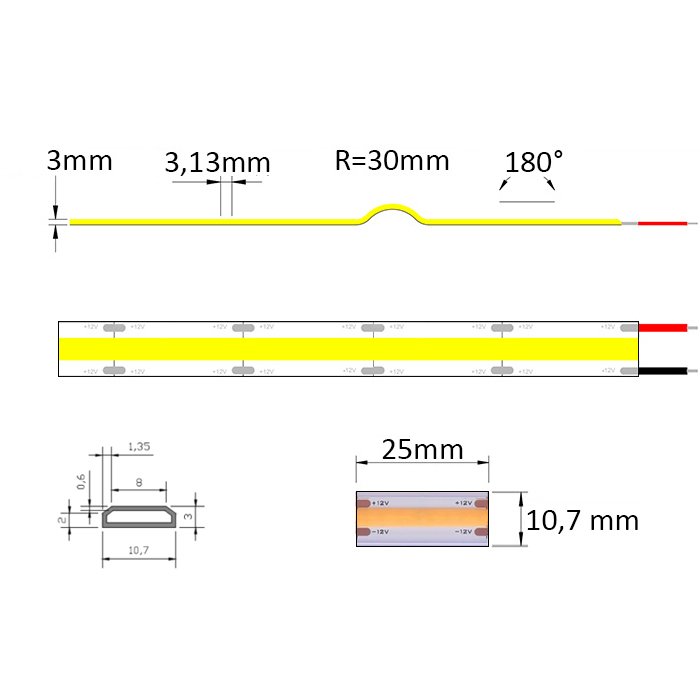 COB LED pásik 12V Lux Miners | IP65 | 8W | 320LED | CRI90+