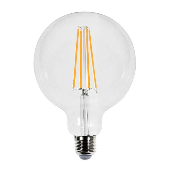 Filamentová žiarovka so závitom E27 s príkonom 11W je technicky kvalitný a energeticky efektívny svetelný zdroj. Vzhľadom k obľúbenému tvaru čírej sklenenej banky G125 (Globe - v najširšej časti Ø 125mm) je skvelou alternatívou do všetkých závesných svietidiel s objímkou E27. Pri rozsvietení filament žiarovky sa prejavia aj výhody číreho sfarbenia skla. Vyžarované svetlo preniká do priestoru plným výkonom úplne bez difúzie. LED filamentová žiarovka G125 s lineárne uloženými vláknami 8xCOBL produkuje osvetlenie charakteristiky: