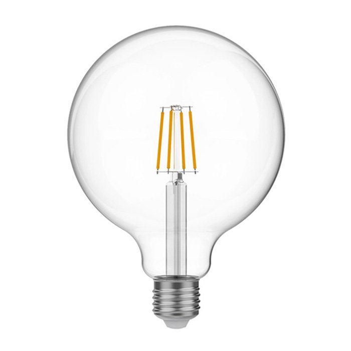 LED žiarovka filament so závitom E27, s čírym sklom tvaru G125 a príkonom 4W je moderné vydanie pre klasické a v minulosti používané žiarovky. Svojím plným okrúhlym tvarom sklenenej banky G125 (Globe - v najširšej časti Ø 125mm) je skvelou alternatívou do všetkých bežných svietidiel s objímkou E27. Číre sfarbenie skla filament žiarovky je vhodné na dosiahnutie veľkého svetelného výkonu bez difúzie svetla o charakteristike: