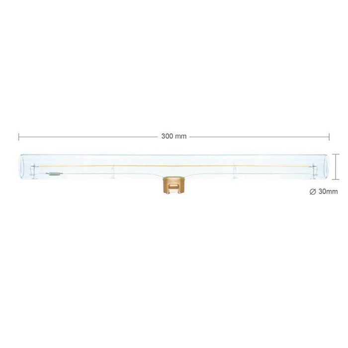 Stmievateľná Lineárna LED žiarovka žiarovka s dlhým rovným vláknom vďaka svojmu tvaru a rozmerom vytvorí jedinečnú atmosféru v akomkoľvek prostredí. V najširšej časti žiarovky nameriate priemer 30mm pri dĺžke 300mm.