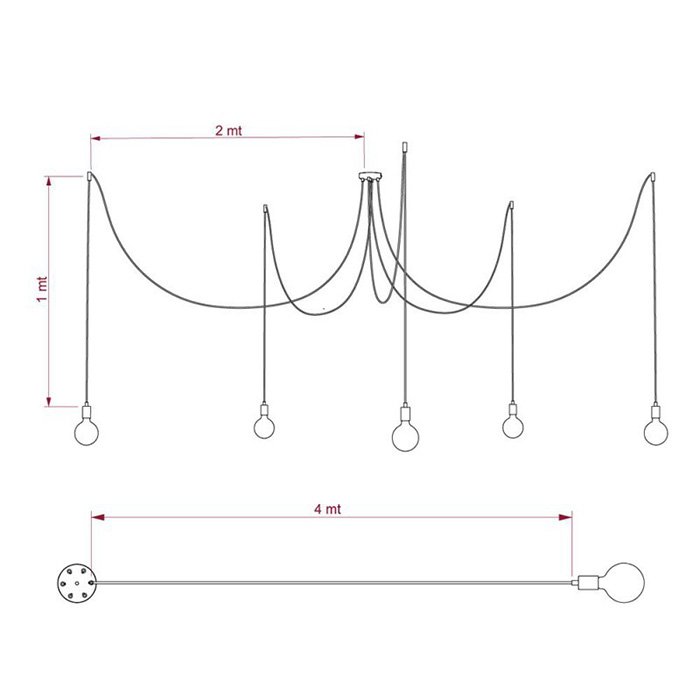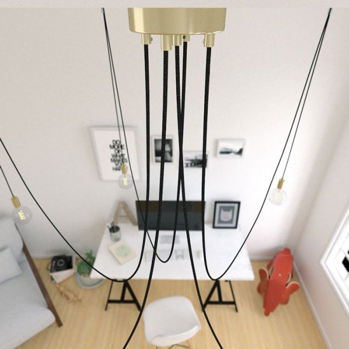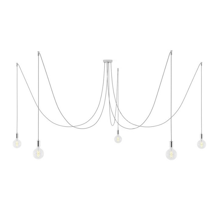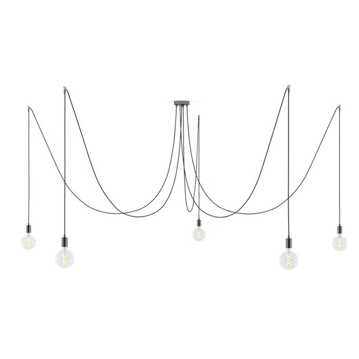 Luster pavúk Spider Metal je jedinečné závesné stropné svietidlo, ktoré je funkčné a dekoratívne zároveň. Niekto by sa mohol názvu pavúk obávať, ale to nie je vôbec potrebné. Jedná sa o fascinujúce závesné svietidlo s piatimi dlhými ramenami, ktorých polohu je možné pri montáži akokoľvek upraviť. Náš Spider Metal môže byť dokonalou alternatívou pre akýkoľvek veľký luster a skvelou voľbou pre tých čo hľadajú neobyčajný luster do veľkého priestoru. Luster Spider Metal môže osvietiť rozsiahlu plochu rovnako ako jeho ramená môžu byť zvesené nad konkrétne miesta v priestore. Flexibilita a variabilita použitia patrí medzi najväčšie výhody tohto typu osvetlenia. Všetky kreatívne duše určite potešia možnosť výberu z viacerých farebných variantov. Všetky komponenty ako 1x stropná rozeta, 5x textilný kábel v dĺžke 5x 400cm, 5x stropné háčiky na uchytenie kábla a 5x kovové objímky na žiarovky prešli dôkladnou selekciou a boli zladené do posledného detailu. Charakteristické prvky ako stropná rozeta a objímky žiaroviek sú vyrobené z kovu v dokonalej povrchovej úprave a spracovaní. Ich jedinečný vzhľad a kvalitu zaručuje výroba Made in Italy. Naším cieľom bolo jednoducho stvoriť výnimočný luster pavúk vzhľadu a vlastností.