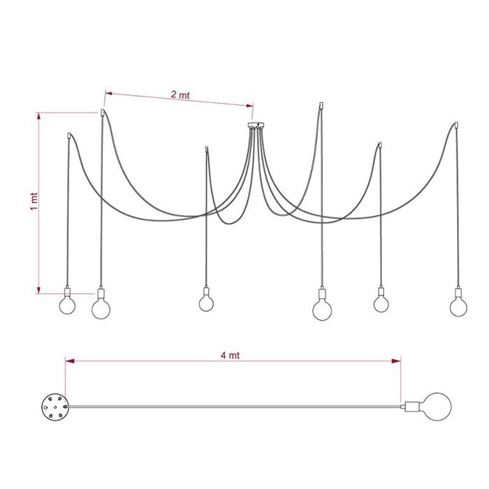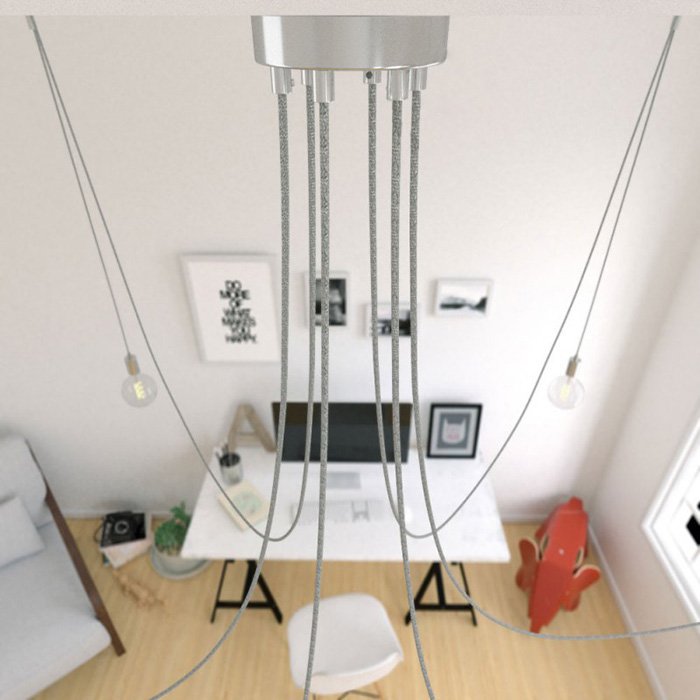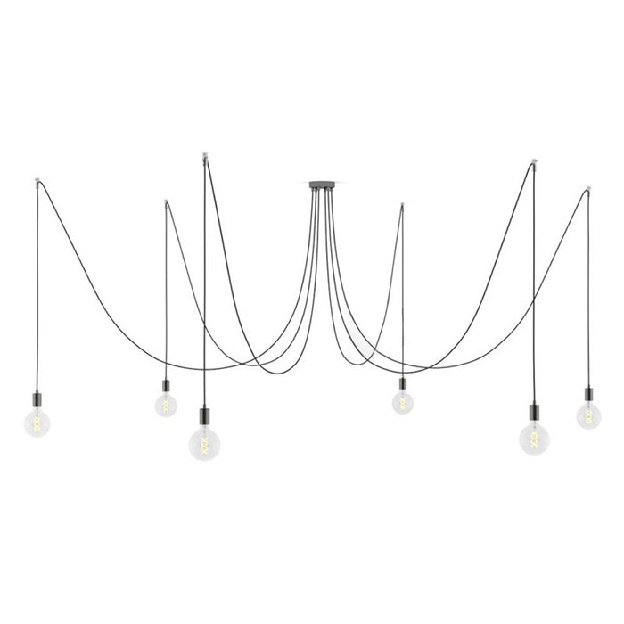 Luster pavúk Spider Metal je jedinečné závesné stropné svietidlo, ktoré je funkčné a dekoratívne zároveň. Niekto by sa mohol názvu pavúk obávať, ale to nie je vôbec potrebné. Jedná sa o fascinujúce závesné svietidlo so šiestimi dlhými ramenami, ktorých polohu je možné pri montáži akokoľvek upraviť. Náš Spider Metal môže byť dokonalou alternatívou pre akýkoľvek veľký luster a skvelou voľbou pre tých čo hľadajú neobyčajný luster do veľkého priestoru. Luster Spider Metal môže osvietiť rozsiahlu plochu rovnako ako jeho ramená môžu byť zvesené nad konkrétne miesta v priestore. Flexibilita a variabilita použitia patrí medzi najväčšie výhody tohto typu osvetlenia. Všetky kreatívne duše určite potešia možnosť výberu z viacerých farebných variantov. Všetky komponenty ako 1x stropná rozeta, 6x textilný kábel v dĺžke 6x 400cm, 6x stropné háčiky na uchytenie kábla a 6x kovové objímky na žiarovky prešli dôkladnou selekciou a boli zladené do posledného detailu. Charakteristické prvky ako stropná rozeta a objímky žiaroviek sú vyrobené z kovu v dokonalej povrchovej úprave a spracovaní. Ich jedinečný vzhľad a kvalitu zaručuje výroba Made in Italy. Naším cieľom bolo jednoducho stvoriť výnimočný luster pavúk vzhľadu a vlastností.