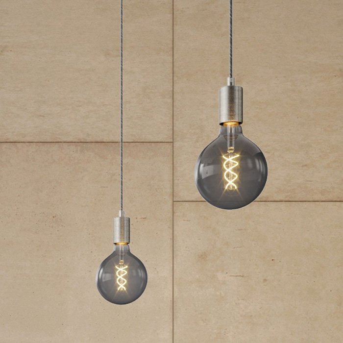 - kartáčovaný titán | textilný kábel ERC37 | vo variante so žiarovkami: [DL700179] LED, G125, 5W, 150 Lm, 2000K, E27, stmievateľná