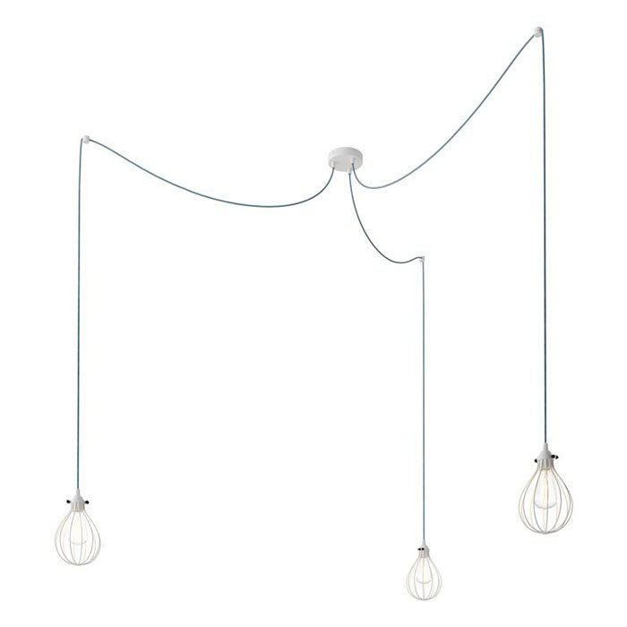 Luster pavúk Spider s tromi drôtenými tienidlami je jedinečné závesné stropné svietidlo, ktoré je funkčné a dekoratívne zároveň. Niekto by sa mohol názvu pavúk obávať, ale to nie je vôbec potrebné. Jedná sa o fascinujúce závesné svietidlo s dvoma dlhými ramenami, ktorých polohu je možné pri montáži akokoľvek upraviť. Náš Spider s tromi drôtenými tienidlami môže byť dokonalou alternatívou pre akýkoľvek veľký luster a skvelou voľbou pre tých čo hľadajú neobyčajný luster do veľkého priestoru. Luster Spider s tromi drôtenými tienidlami môže osvietiť rozsiahlu plochu rovnako ako jeho ramená môžu byť zvesené nad konkrétne miesta v priestore. Flexibilita a variabilita použitia patrí medzi najväčšie výhody tohto typu osvetlenia. Všetky kreatívne duše určite potešia možnosť výberu z viacerých farebných variantov. Všetky komponenty ako 1x stropná rozeta, 3x textilný kábel v dĺžke 300cm, 3x stropné háčiky na uchytenie kábla a 3x drôtené tienidlá Drop s objímkou na žiarovky E27 prešli dôkladnou selekciou a boli zladené do posledného detailu. Ich jedinečný vzhľad a kvalitu zaručuje výroba Made in Italy. Naším cieľom bolo jednoducho stvoriť výnimočný luster pavúk vzhľadu a vlastností.
