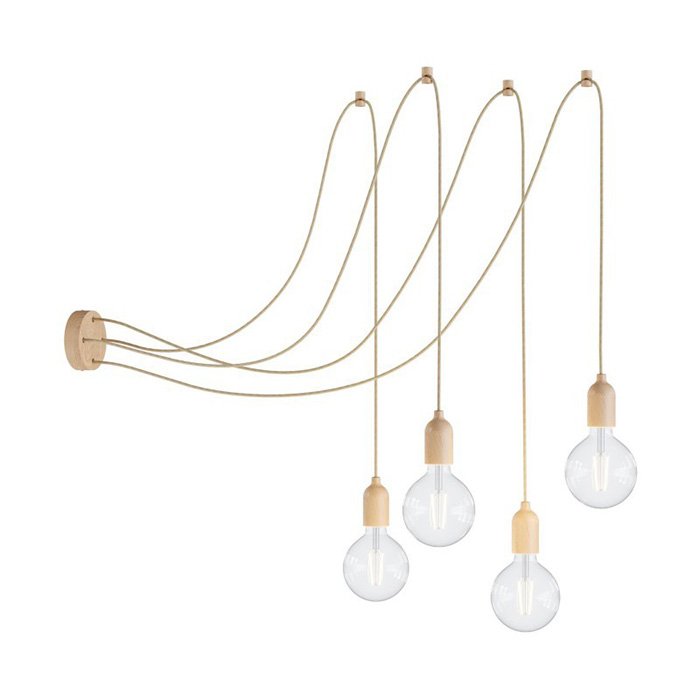 Luster pavúk Spider Wood je jedinečné závesné stropné svietidlo, ktoré je funkčné a dekoratívne zároveň. Niekto by sa mohol názvu pavúk obávať, ale to nie je vôbec potrebné. Jedná sa o fascinujúce závesné svietidlo so štyrmi dlhými ramenami, ktorých polohu je možné pri montáži akokoľvek upraviť. Náš Spider Wood môže byť dokonalou alternatívou pre akýkoľvek veľký luster a skvelou voľbou pre tých čo hľadajú neobyčajný luster do veľkého priestoru. Luster Spider Wood môže osvietiť rozsiahlu plochu rovnako ako jeho ramená môžu byť zvesené nad konkrétne miesta v priestore. Flexibilita a variabilita použitia patrí medzi najväčšie výhody tohto typu osvetlenia. Všetky kreatívne duše určite potešia možnosť výberu z viacerých farebných variantov. Všetky komponenty ako 1x stropná rozeta, 4x textilný kábel v dĺžke 4x 300cm, 4x stropné háčiky na uchytenie kábla a 4x kovové objímky na žiarovky prešli dôkladnou selekciou a boli zladené do posledného detailu. Charakteristické prvky ako stropná rozeta a objímky žiaroviek sú vyrobené zo 100% bukového dreva v dokonalej povrchovej úprave a remeselnom spracovaní. Ich jedinečný vzhľad a kvalitu zaručuje výroba Made in Italy. Naším cieľom bolo jednoducho stvoriť výnimočný luster pavúk vzhľadu a vlastností.