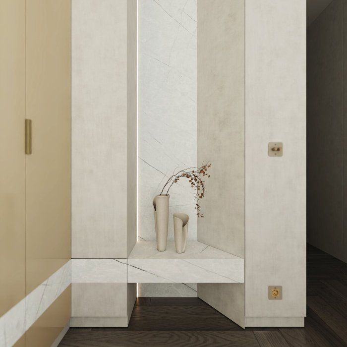 • Zabudovanie do rohov stien s keramickým alebo kamenným obkladom - inštalácia do rohov stien s keramickým alebo kamenným obkladom sa vykonáva počas pokládky obkladu, nie dodatočne. Lišta sa najskôr pevne usadí a mechanicky zafixuje do rohu steny ešte pred samotným lepením obkladových prvkov. Následne sa obklad alebo kameň presne dopokladá k hranám lišty, čím vznikne čistý a presne definovaný prechod medzi jednotlivými materiálmi.