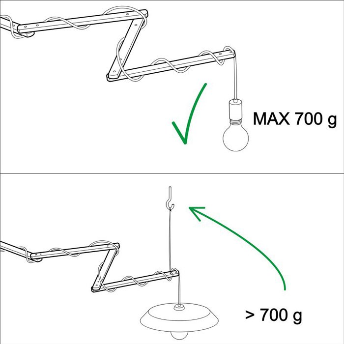 Nástenné rameno lampy Pinocchio XL ponúka ľahký spôsob montáže k povrchu pomocou štandardného spojovacieho materiálu akým sú skrutky a hmoždinky. Všetko upevňovacie príslušenstvo je súčasťou dodávky.