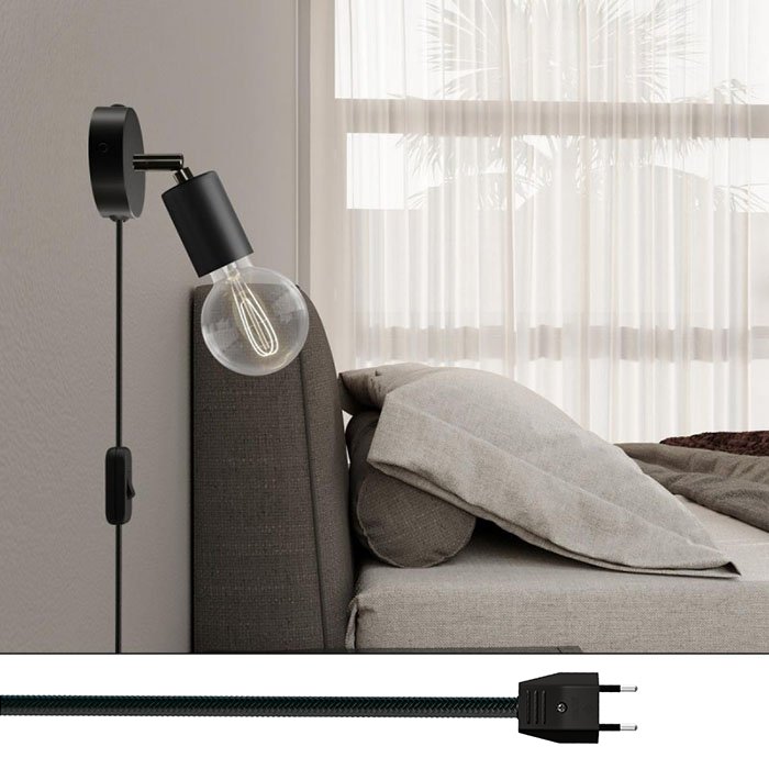 - Kovová nástenná lampička s vypínačom na kábli a kĺbom